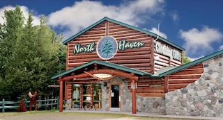 Our unique shopping environment will captivate you from the moment you step inside. You will find our lodge-style gift shop enchanting, from the warm pine walls, the scent of balsam in the air, to the sound of trickling water from our puddingstone waterfall fireplace. At North Haven, we have exquisite jewelry found nowhere else, made from natural stone, butterfly wings, and hand-cast glass. We have so many unique gifts and art to pick from, many made from Drummond Island puddingstone cut right across the road at our Puddingstone Rock Shop. Among the items we make are bookends, coasters, charcuterie boards, nightlights, wall clocks, knives, magnets, jewelry, and a whole lot more. We also have clothing, Pendleton blankets, candles, and books. At North Haven, we believe in a quality shopping experience and are pleased to invite you to be our guest. Your adventure awaits!